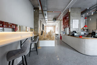 Полностью оборудованная барная зона (профессиональная кофемашина, кофемолка, холодильное оборудование и пр.)