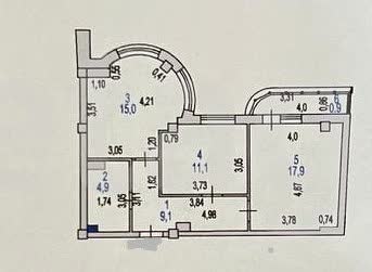 Площадь: общая — 58,9 м², кухня — 15 м²