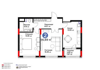 - Общая площадь56.69 м²